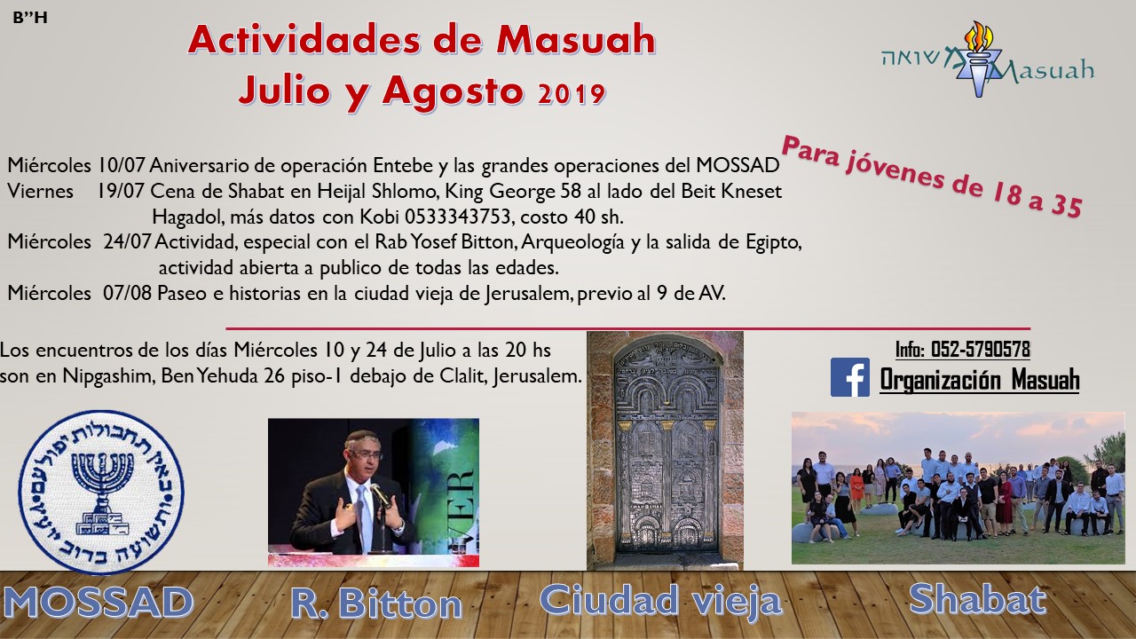 Masuah es una organización que nuclea a jóvenes judíos de América Latina y España, fundada en Israel en el año 1996, por iniciativa del Rabino Nahum Neria, Yaakob Tabachnik y Shmuel Kornblit. [...]